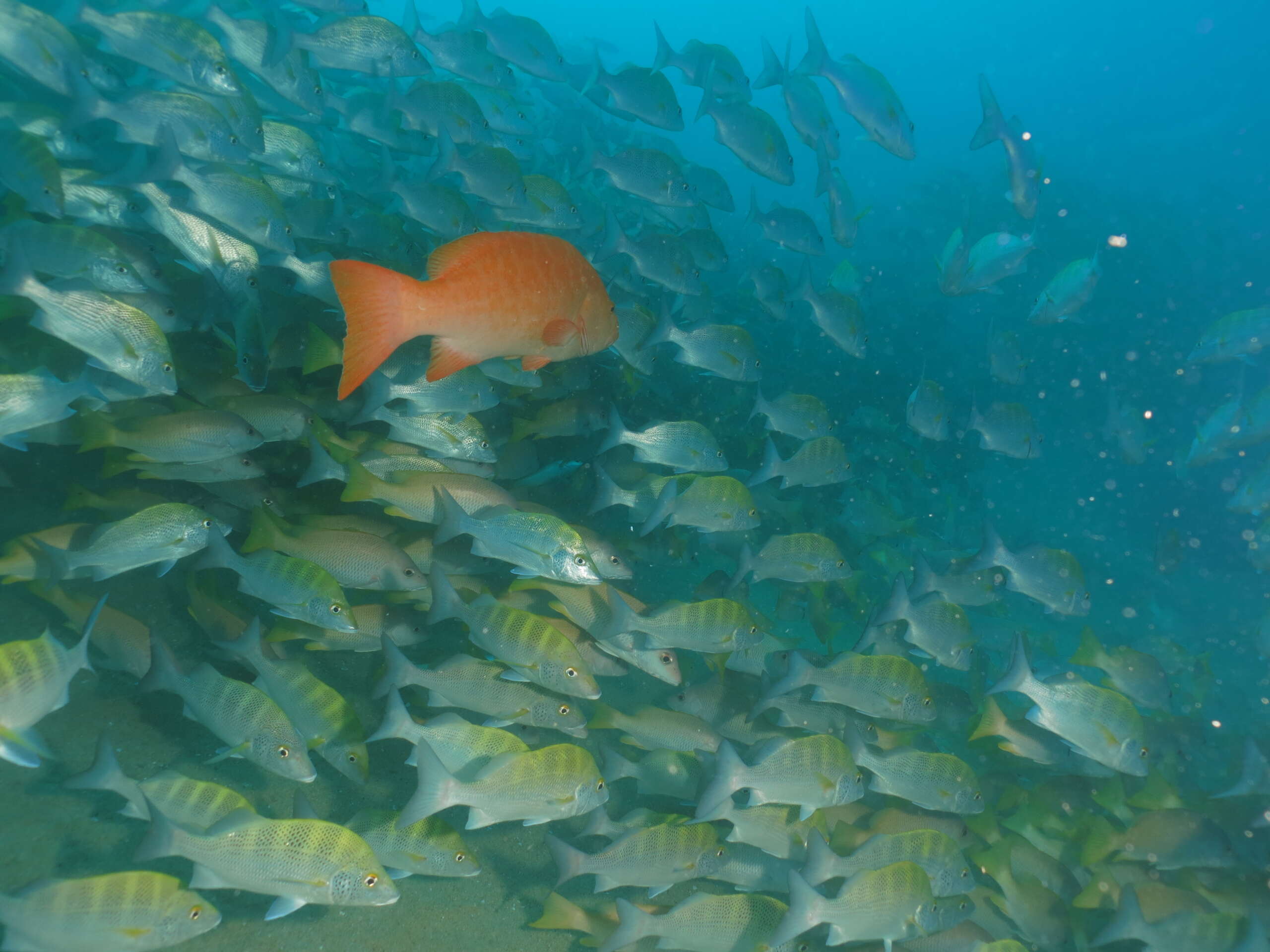 - Escuelas de arrecife: pargos, roncos, damiselas, cromis.